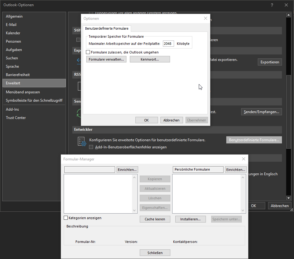 Outlook – Benutzerdefiniertes Formular konnte nicht geöffnet werden
